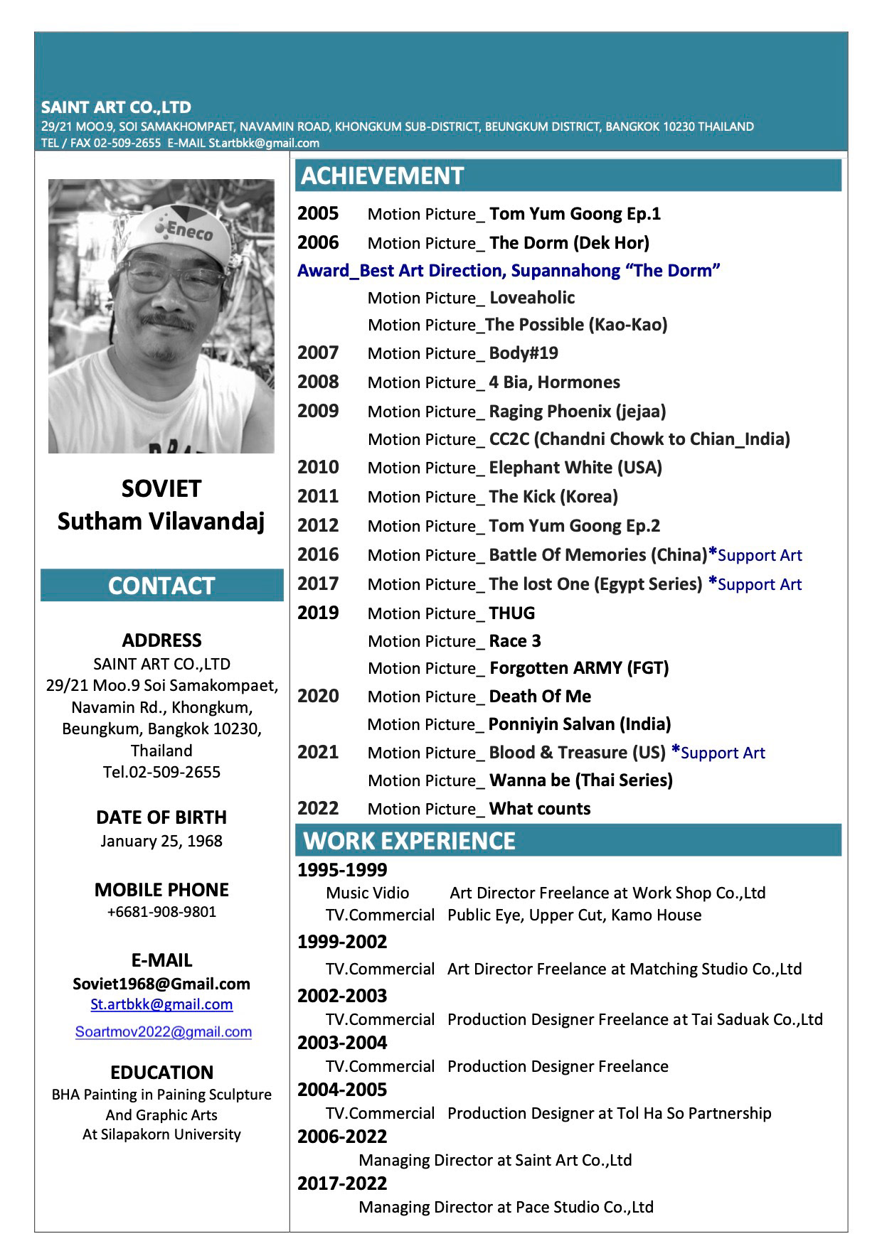 Production Design Represented by Saint Art co,.ltd in Thailand